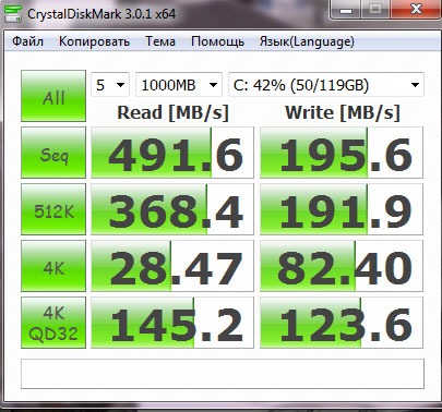 А при Intel SATA AHCI controller - упали показатели чтения/записи в CrystalDiskMark с 500/196 до 488/167.