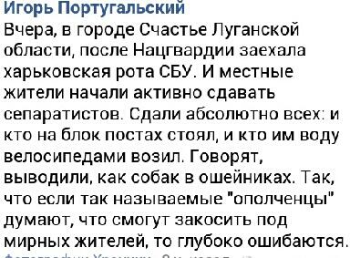 ЦитатаПри прочтении самого материала выясняется, что единственный фактаж, который как-то соотносится с заголовком - это цитата анонимного ополченца-террориста, который ссылается на своего такого же неназванного коллегу, которому в свою очередь об этом поведала анонимная соседка.