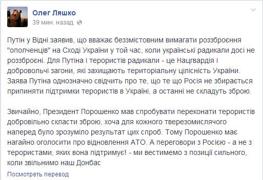 ЦитатаЦе не пєтушня збила гелікоптер сьогодні. Це не пєтушня збила Іл-76. Це не вона обстрілює наші блок-пости, вбиваючи солдат (а сьогодні щонайменш двоє загиблих від обстілів), це не виблядки з колорадськими стрічками продовжують тримати у середньовічному колапсі Схід України.