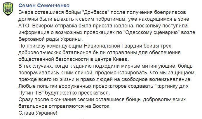 ЦитатаБатальоны ДОНБАСС И КИЕВ-1, самые экипированные из всех, "решают вопросы" возле Верховной Рады. "Все никак не могут уехать из Киева"...