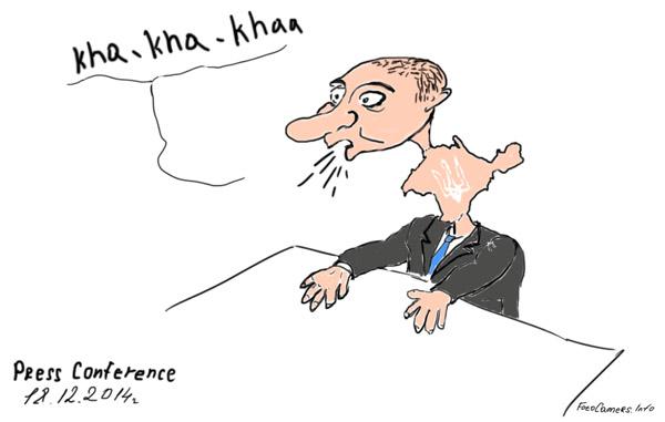 на карте России, представленной в качестве заставки итоговой пресс-конференции Путина на всех мониторах - отсутствовал Крым