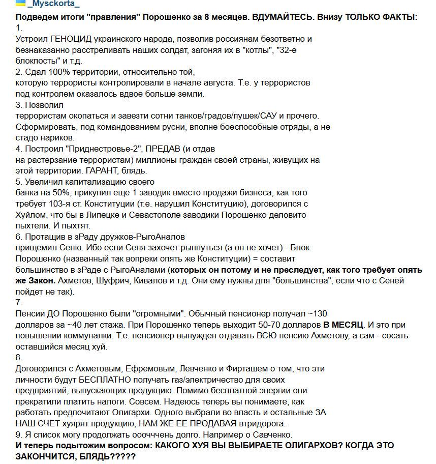 у Пороха был выбор или майдан3 или война, - но он жадный...