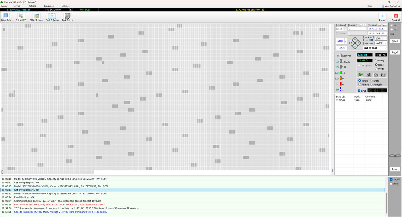 Оце 6Тб що почав лагати і мав конську чергу - вивів з роботи і прогнав вікторією. Загалом показув 8 збійних секторів смарт. Але схоже ремапінг закінчився і після того як прогнав вікторією - якихось проблем не виявив.