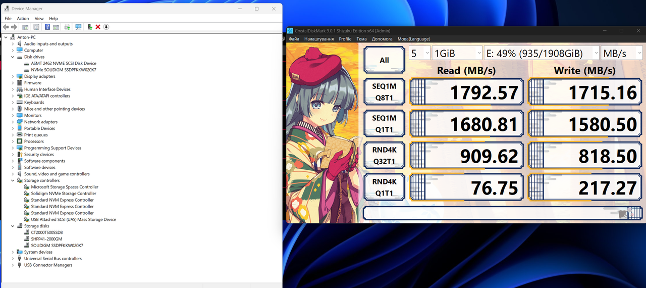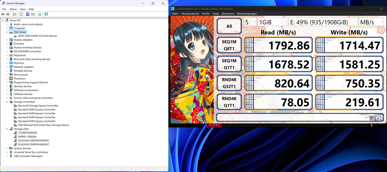 Наприклад мій Samsung 9100 PRO 1 TB (MZ-VAP1T0BW)